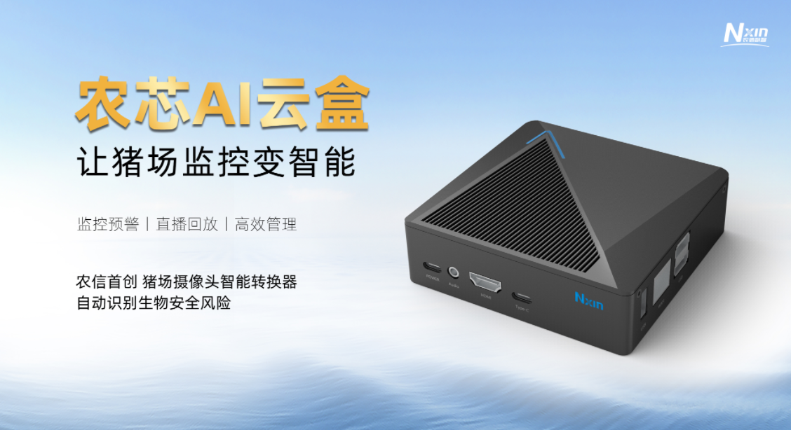 农信数智在多年的猪场生物安全管理和AI算法研究过程中已经积累了大量的经验,基于猪场生物安全频发的问题,如人员监管难度大、传统监控能力差、监管大数据缺乏等现状,农信首创研发了这款猪场摄像头智能转换硬件——农芯AI云盒,可自动识别生物安全风险,让猪场监控变智能!