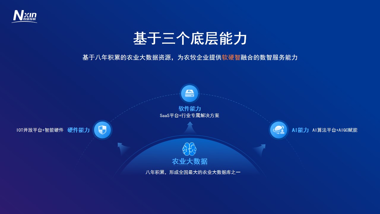 基于八年积累的农业大数据资源,通过推动基于三个底层能力:硬件能力、软件能力、AI能力,为农牧企业提供软硬智融合的数智服务能力。用农芯IOT开放平台和Loki算法平台打破数据孤岛,满足猪场的全面数字化需求;用IOT驱动猪场设备智能化,通过传感器和大数据分析,为猪企提供了实时的生产数据,保安全,抓资产,提效率。