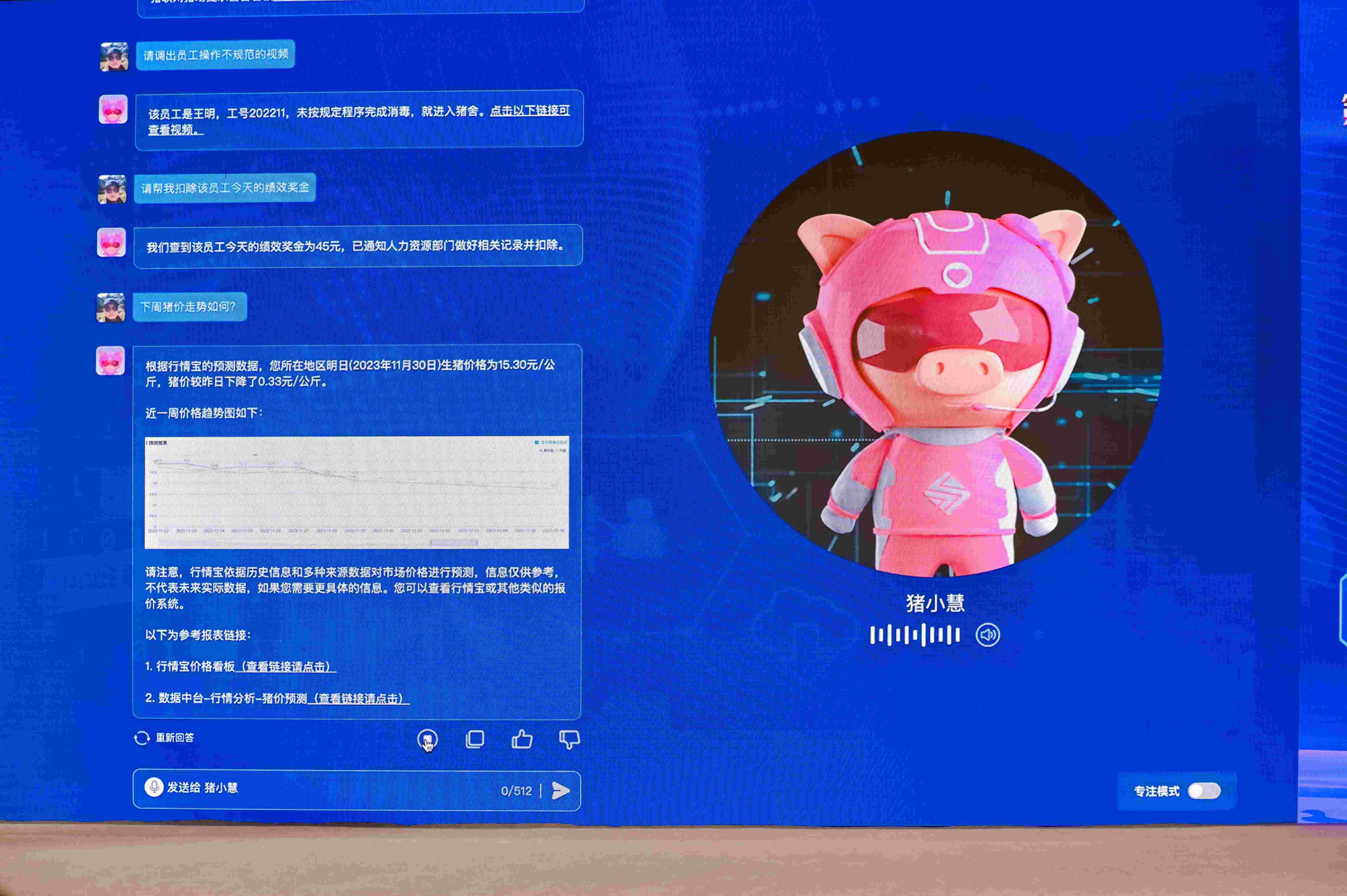 从场景到模型,再到解决方案,通过自然语言交互的方式,用“大模型+大数据”驱动猪场管理智慧化,让养猪变得更加直接、简单与智能。