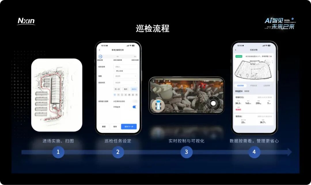 它并非只是一个“会行走的摄像头”,而是与云端“爱思智能体”实时协同的感知神经与决策终端。传统养殖中“人”的局限——经验波动、效率瓶颈与生物安全风险,正被这套冷静、精准、不知疲倦的智能系统所化解,推动生产管理从“凭经验”迈向“靠数据”的新阶段。