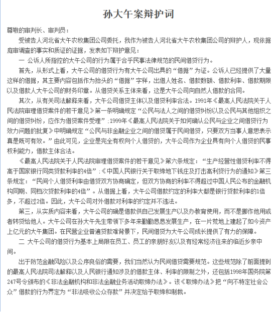 孙大午案辩护词